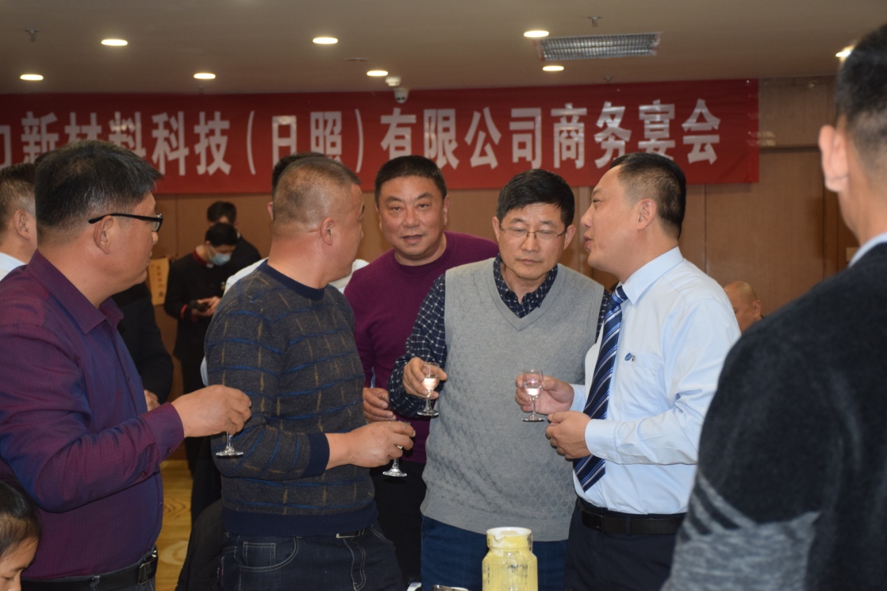古人云“有朋自远方来,不亦乐乎”,12日晚,公司在日照君临天下大酒店举行了隆重的欢迎晚宴。宴会上来自江苏、山东两地的客商与公司高管及业务团队推杯换盏,觥筹交错,公司常务副总陈玉刚代表公司致欢迎词,对百忙之中拨冗莅临聚力新材料科技(日照)有限公司商务宴会的客商表示亲切的问候和热烈的欢迎! 并对所有关心、支持山东聚力集团发展的各界朋友致以崇高的敬意!